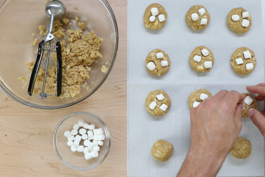 15. Bake for 10–12 minutes, or until the cookies are set and the marshmallows are golden brown.