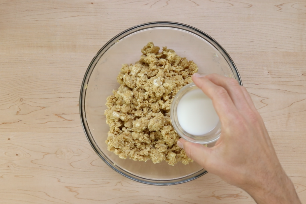 10. If the dough is too crumbly to hold together, add a small splash of milk until it comes together.