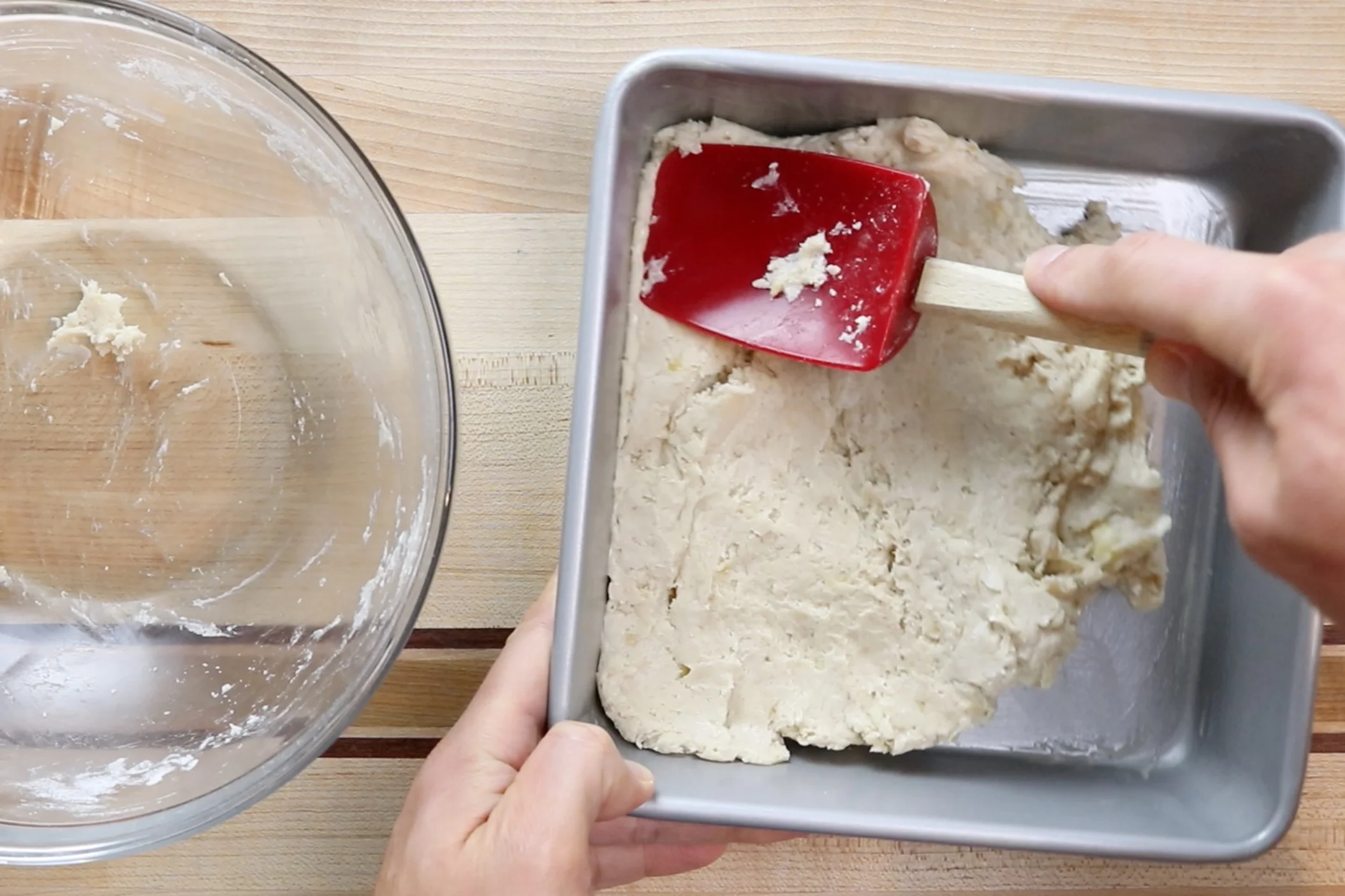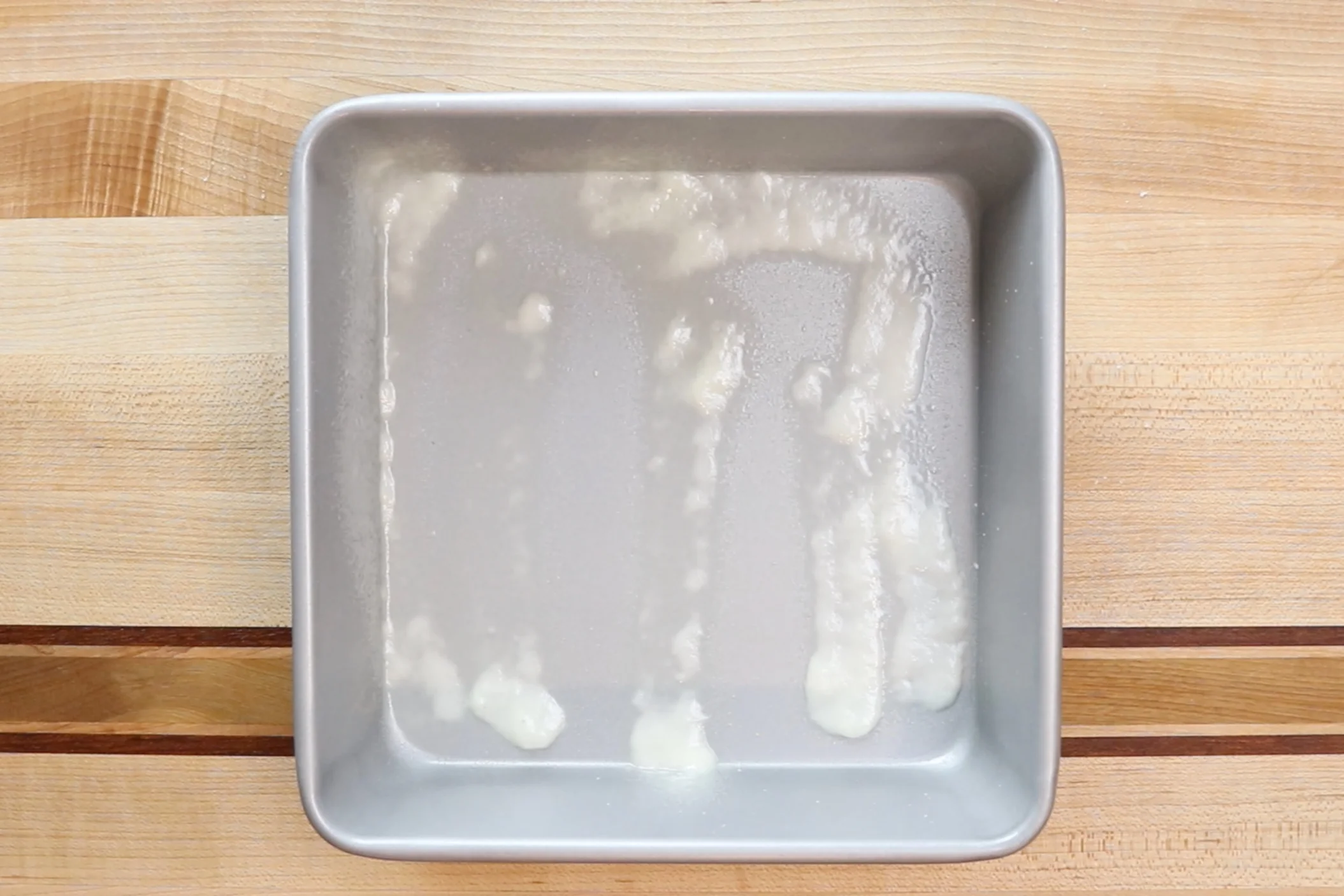 1. Preheat the oven to 300°F, and grease a 8”-square pan with baking spray.