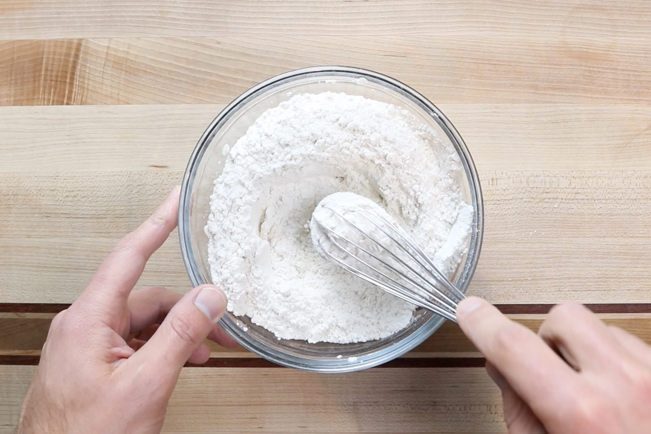 - In a small bowl, whisk together the flour, baking powder, salt and cinnamon.
