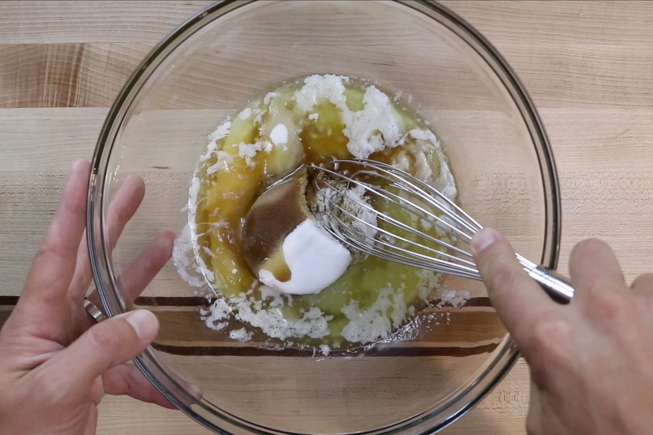 - Slowly add the flour mixture to the wet mixture. Mix until just combined. Do not overmix.