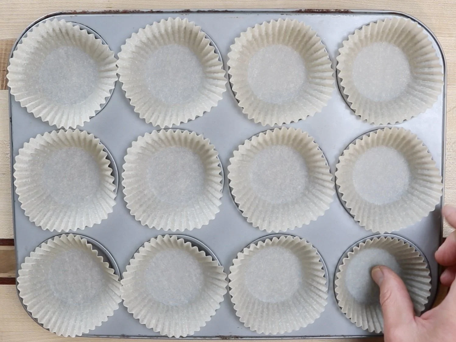 1. Preheat oven to 400 degrees and line a 12-count muffin tin with paper liners.
