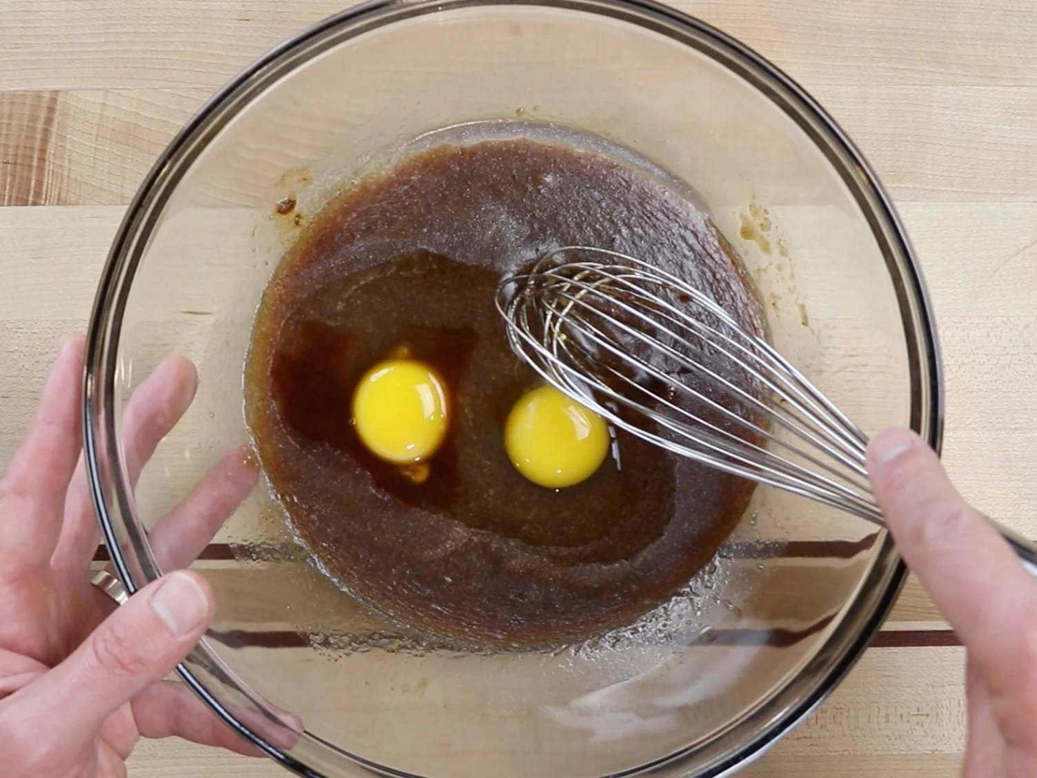 4. Add the eggs and vanilla. Whisk together until well combined.