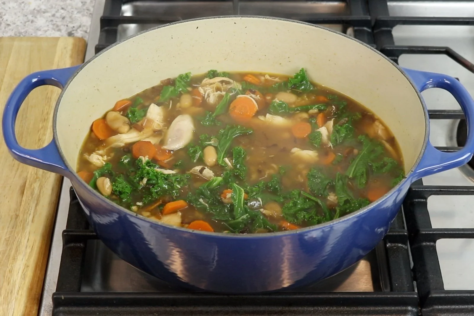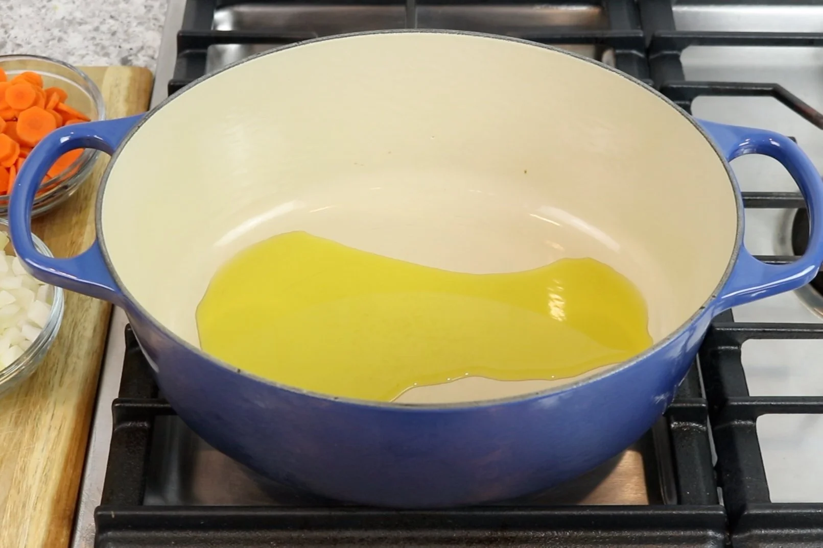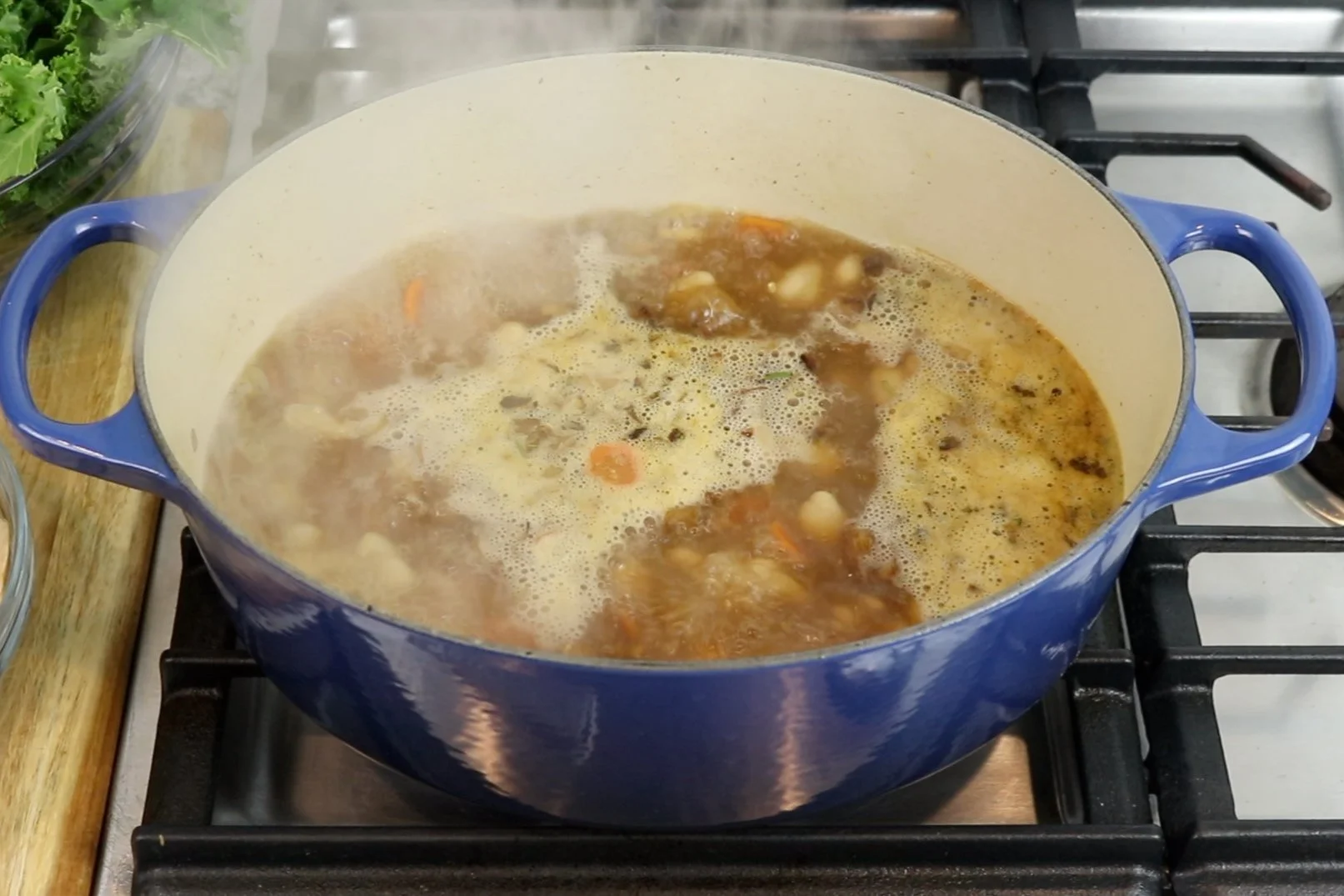 1. In a Dutch oven or a soup pot, warm olive oil over medium-high heat.