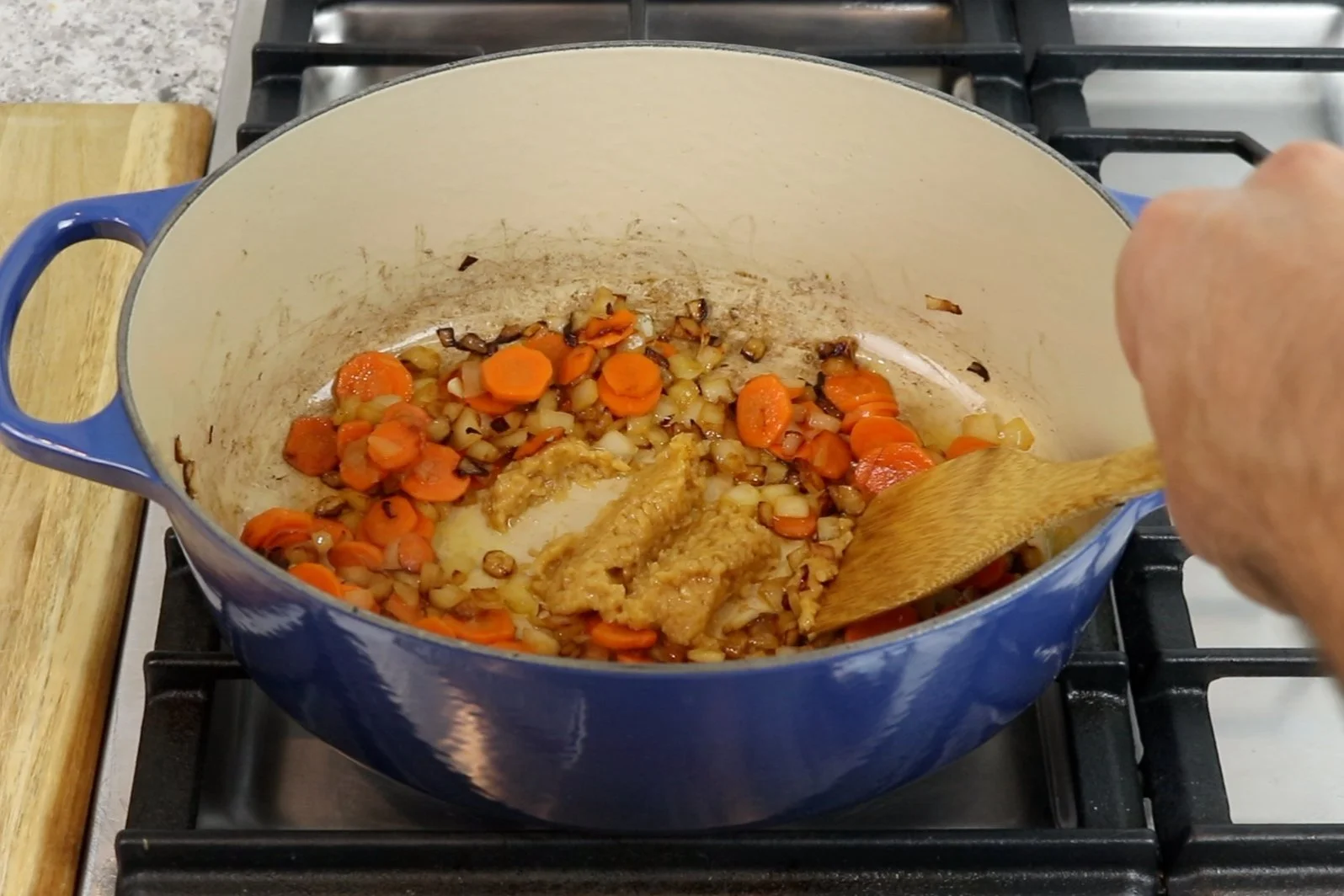 2. Add the onion and carrots.
