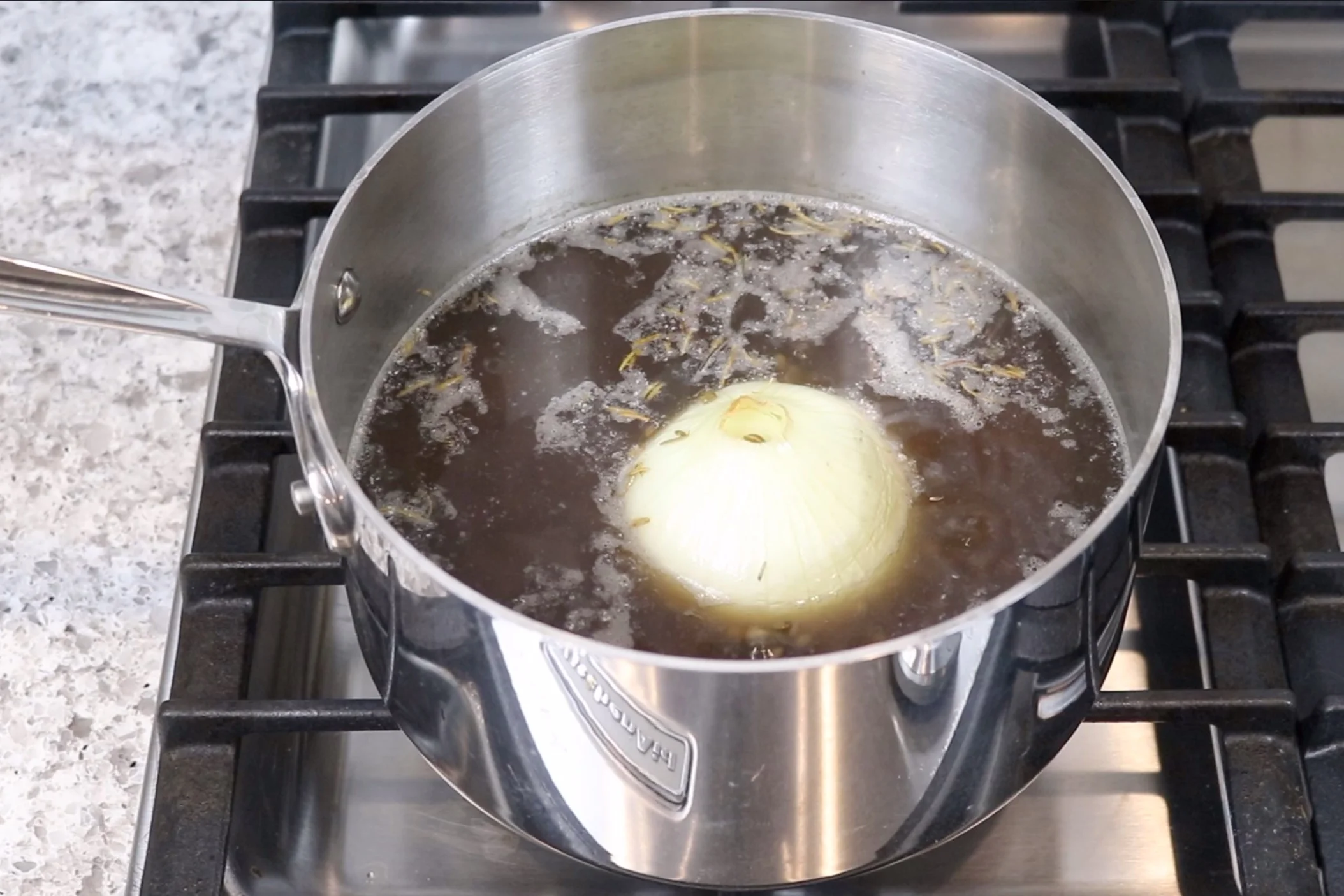 1. In a large saucepan, add lentils, water, garlic, rosemary, bay leaves and onion. Stir together and bring to a boil over medium high heat.