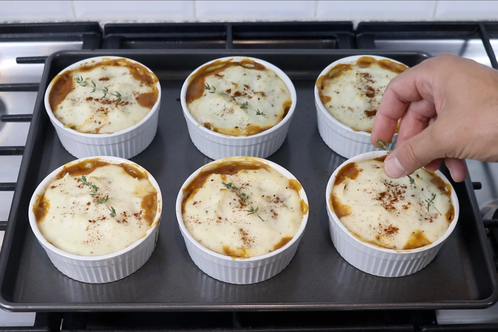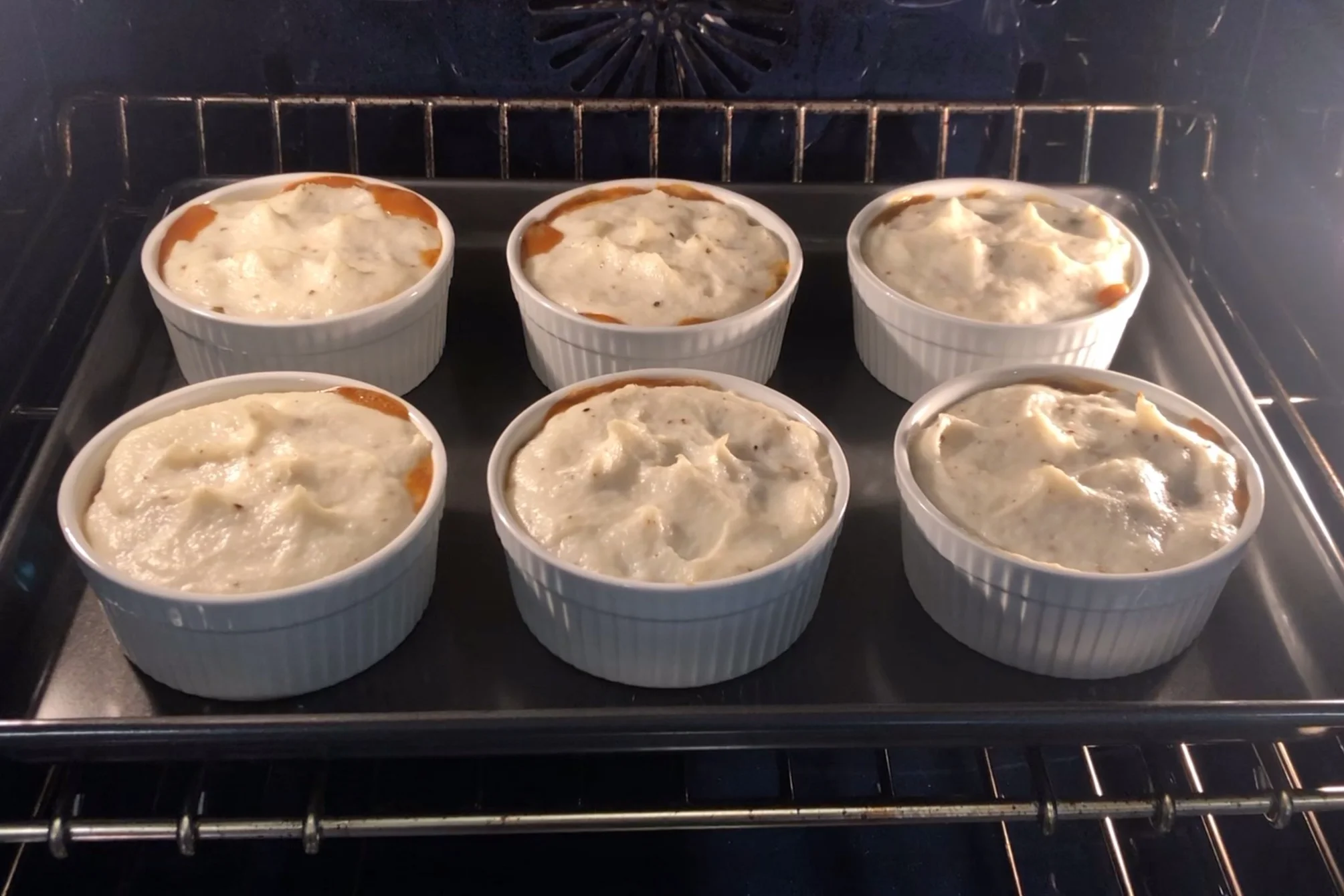 - Transfer ramekins to a baking sheet and bake for 30 minutes. For the last 5 minutes turn the oven to broil to brown the top of the mash.